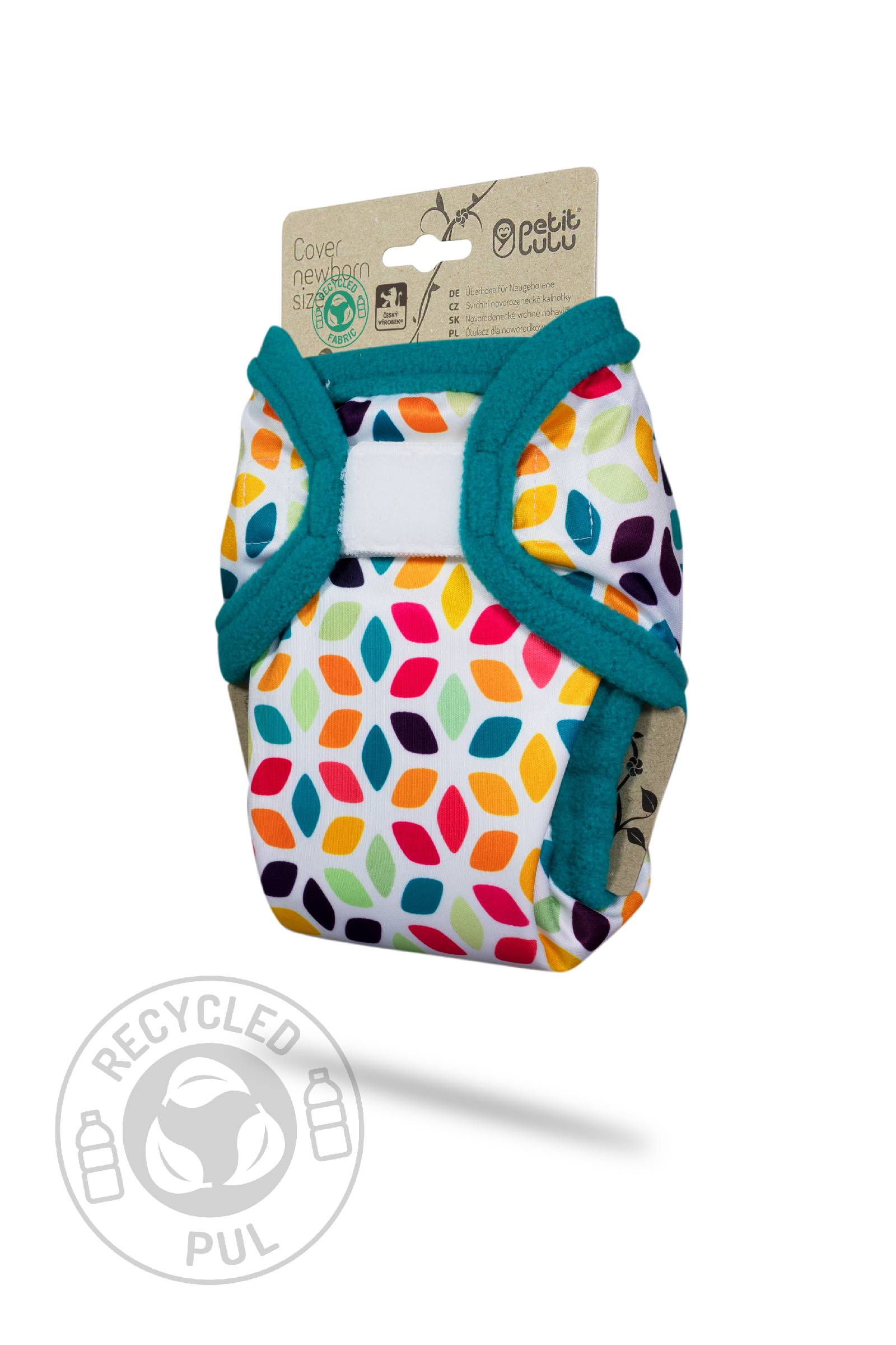 - Material: 100 % recycelter Polyester (mit Polyurethan laminiert - PUL), Vlieseinfassung